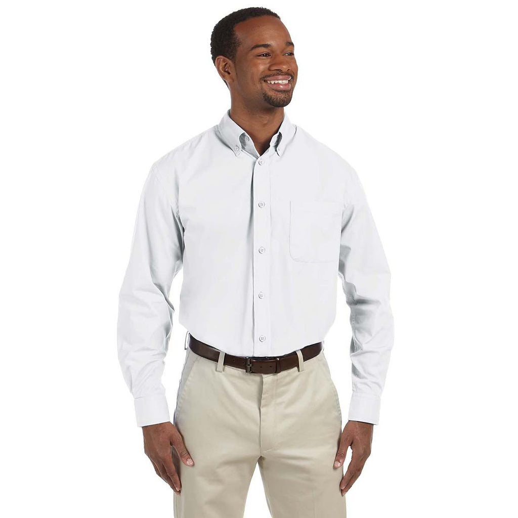 Thirty-five percent cotton poplin gives the Harriton Men's White 3.1 oz. Essential Poplin its super soft feel. The remaining polyester ensures the stylish shirt resists rips and tears. Extra stitching at the seams and buttons bolster the strength of the long-sleeve shirt. Two-button adjustable cuffs complement the button down collar to create a versatile shirt to wear at the office and during visits to upscale restaurants. The left chest pocket offers convenient storage for a Smartphone. Attach your corporate label to spread the word about your business. Corporate logoed apparel makes ideal gifts for your employees.Corresponding Women's Style: Harriton Women's White 3.1 oz. Essential Poplin
