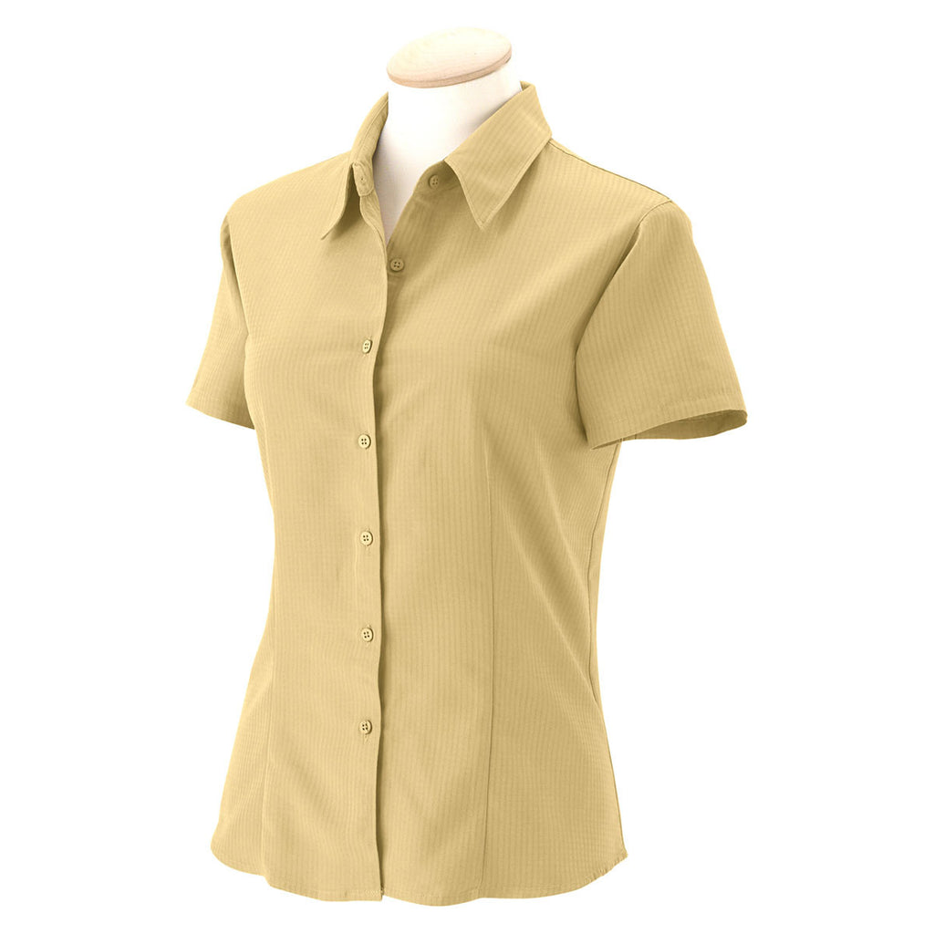 Harriton Women's Pineapple Barbados Textured Camp Shirt are the ideal corporate gift for women on your team who appreciate high end fashion. The short sleeve camp shirt includes a special shadow weave that changes the corporate apparel game. Enjoy how your professional peers will marvel at the well-defined collar, as well as the front and back contour darts. Rugged rayon and polyester deliver a superior performance to allow the women on your team to enjoy the sand washed soft shirt for years to come. Add a custom logo to make potential customers aware of your company.Corresponding Men's Style: Harriton Men's Pineapple Barbados Textured Camp Shirt