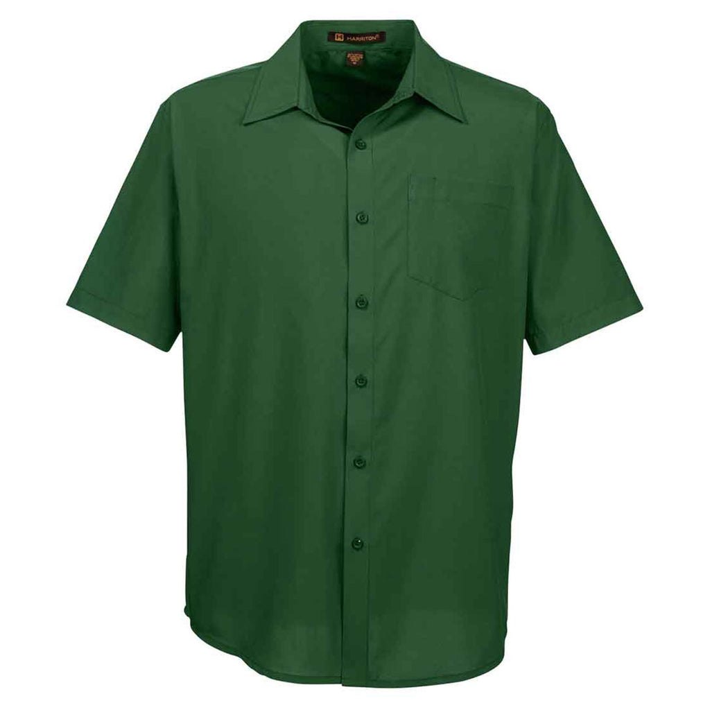 Antimicrobial properties make the Harriton Men's Palm Green Paradise Short-Sleeve Performance Shirt the ultimate corporate gift for your team of high achievers. The 100% polyester fabric remains as fresh at the end of the day as it did when your employees put the high-performance shirt on in the morning. Rugged polyester resists the rips and tears that diminish the quality of other work shirts. Ultraviolet ray protection prevents the sun from damaging your skin. Use the convenient chest pocket to store a cell phone for instant access to the home base. The structured collar stand delivers a dignified fashion statement.Corresponding Women's Style: Harriton Women's Palm Green Paradise Short-Sleeve Performance Shirt