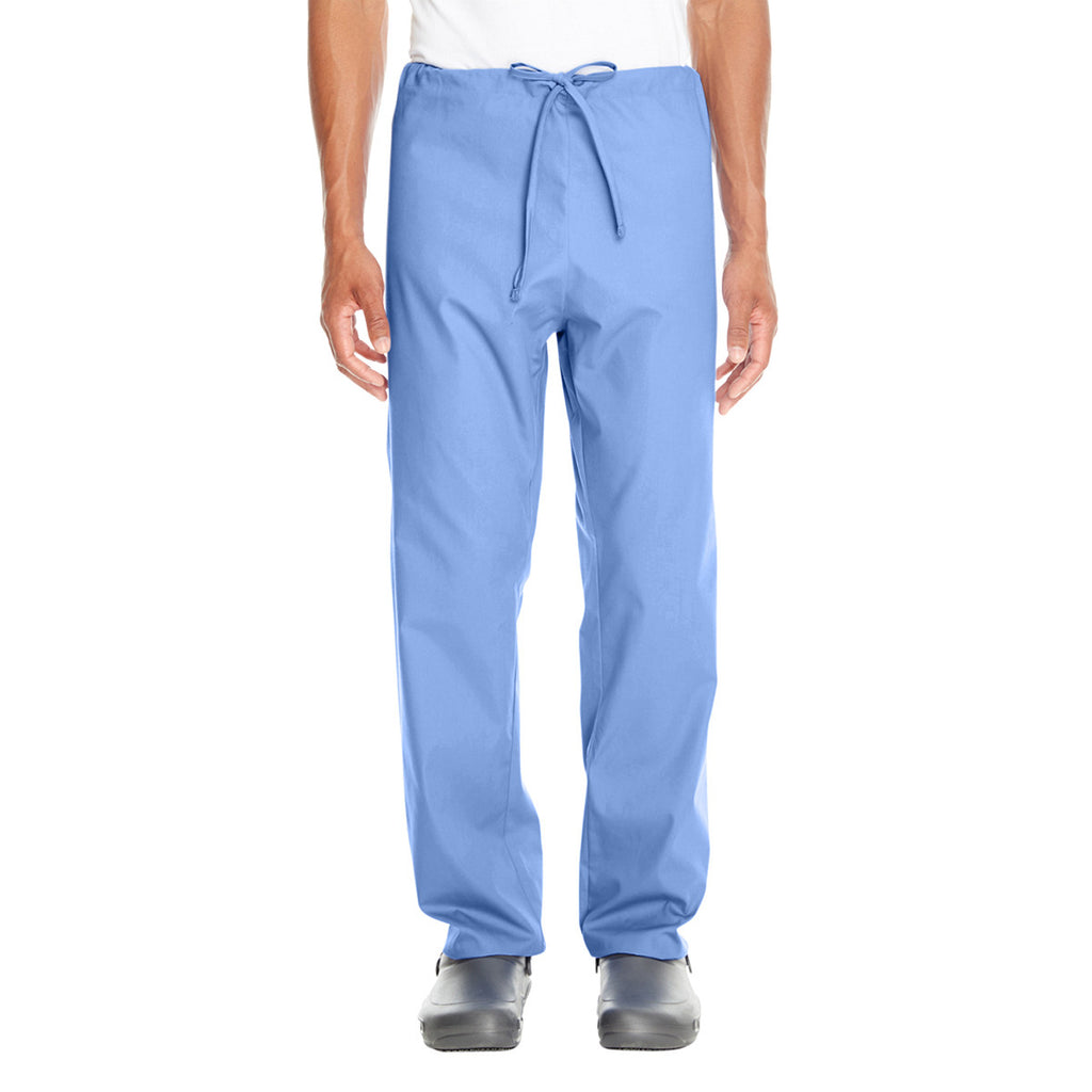 Attach your health care facility logo to the Harriton Men's Ciel Blue Restore 4.9 oz. Scrub Bottom to increase awareness of the top notch medical care you provide in the community. The 55% cotton and 45% polyester poplin scrub bottom ensures you remain comfortable throughout a hectic 12-hour shift. Rugged polyester resists the types of rips and tears that diminish the quality of other types of scrub garments. The convenient back pocket offers you a place to store vital medical charts and health care accessories that ease the pain suffered by patients. Pull the drawstring at the waist tighter to ensure the perfect scrub bottom fit.Corresponding Scrub Top Style: Harriton Men's Ciel Blue Restore 4.9 oz. Scrub Top