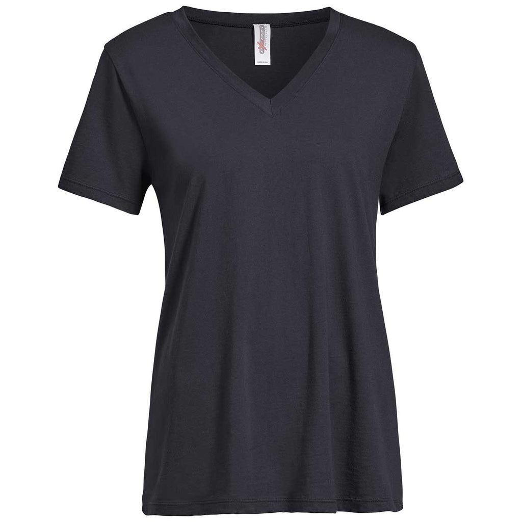 Make the female members on your high achieving company team stand out for all the right fashion reasons by designating the Expert Women's Black American Moca V-Neck Tee the official employee uniform. The versatile tee works fashionably well as a softball uniform, as well as a gift you hand out for attendees at the next industry trade show. Enjoy supreme comfort with the relaxed fit of the short sleeve tee. Super smooth combed cotton keeps your team feeling fresh throughout every grueling workday. Screen print your corporate logo on the tee to reach more potential customers at civic and professional networking events.The minimum order for this product is 12 pieces.