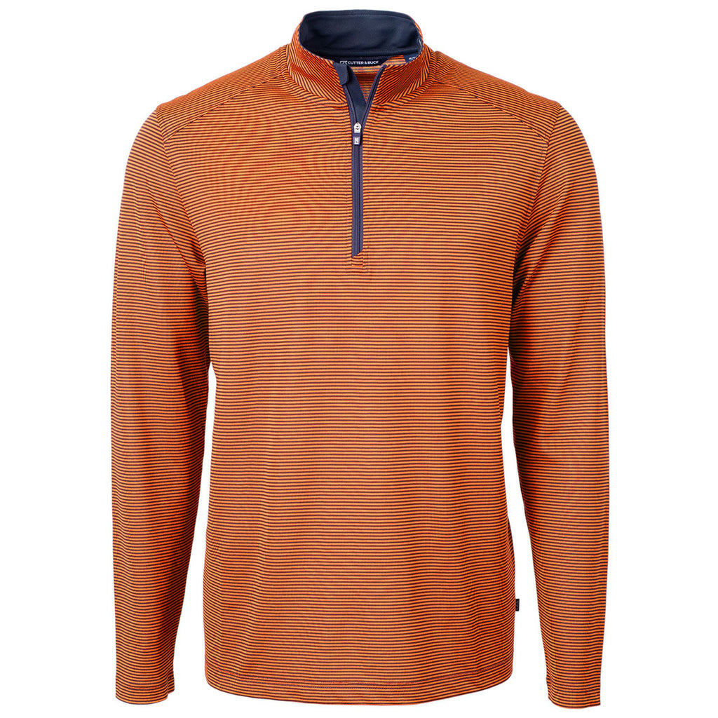 Cutter & Buck Men's College Orange/Navy Blue Virtue Eco Pique Micro Strip Recycled Quarter Zip