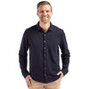Cutter & Buck Men's Liberty Navy Advantage Tri-Blend Eco Soft Pique Long Sleeve Knitted Button Down
