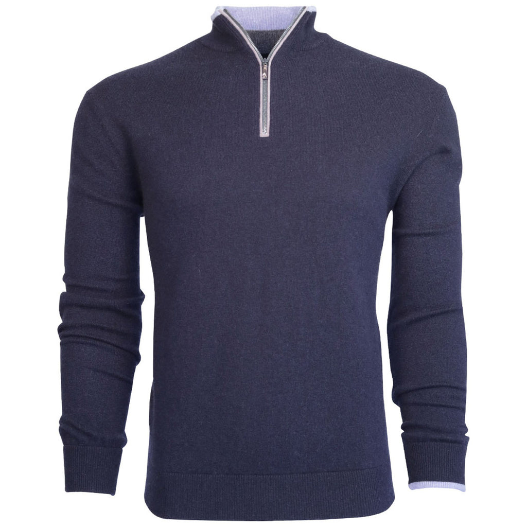 The corporate Greyson Men's Maltese Blue Sebonack 1/4 Zip Sweater is a cozy wool-cashmere blend for comfort and warmth. Select your favorite option from five eye-catching colors and distribute this beautiful sweater to your company staff for a job well done.Highlights
