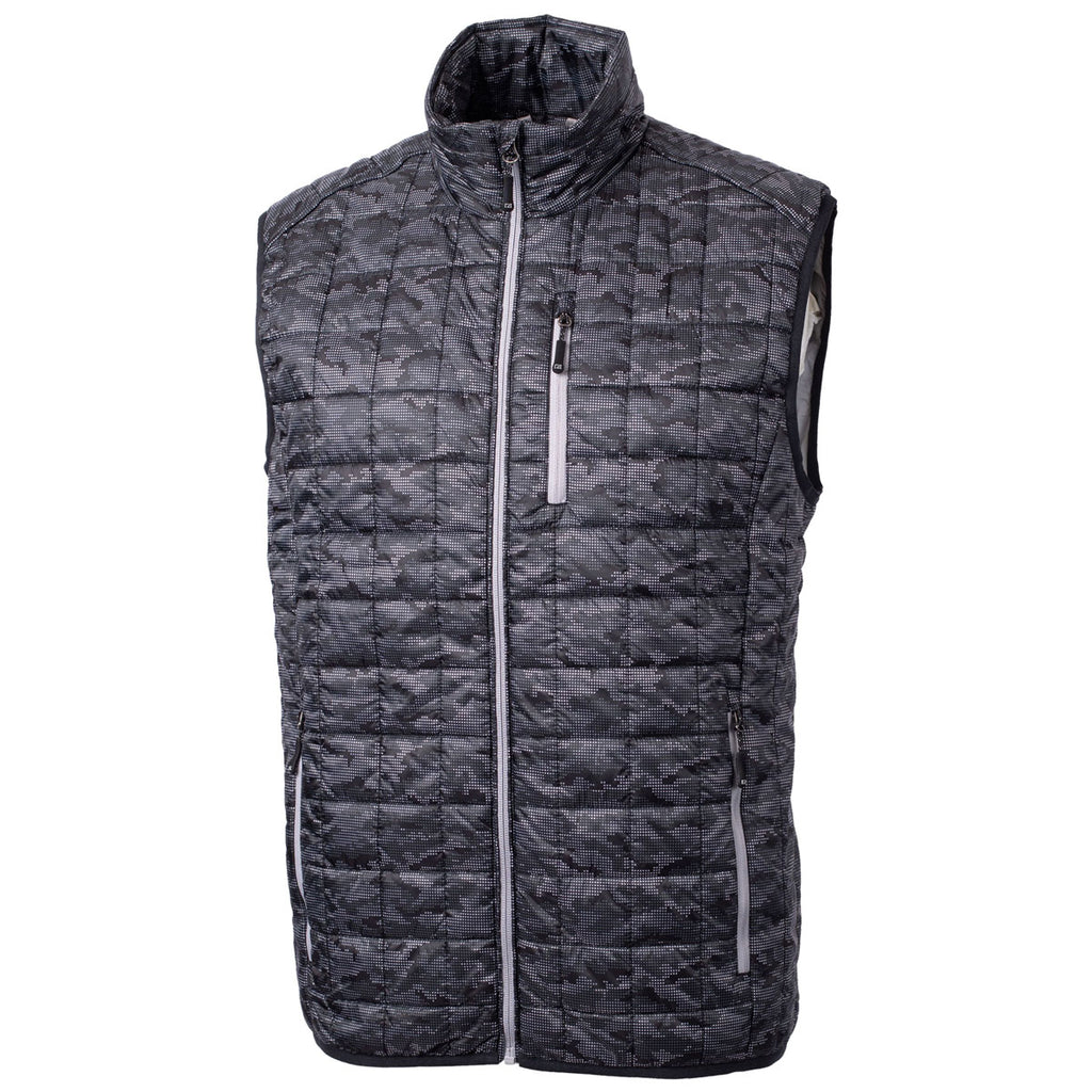 Cutter & Buck Men's Black Rainier PrimaLoft Eco Insulated Full Zip Printed Puffer Vest