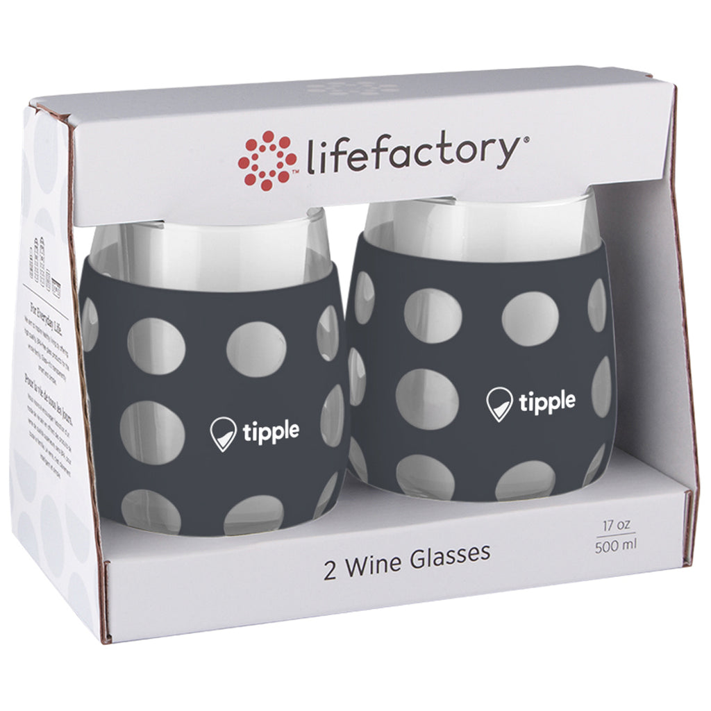 SnugZ Grey 17 oz. lifefactory Wine Glass with Silicone Sleeve 2 Pack