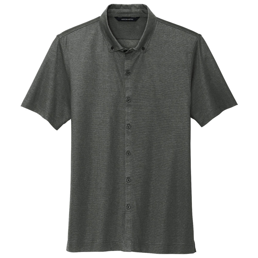 Choose embroidery for the Mercer+Mettle Men's Anchor Grey Heather Stretch Pique Full-Button Polo for a high-end look that works for the corporate office or a night out with friends. The polished silhouette is great for the office with a custom logo or to use as a unique uniform for employees. The moisture wicking fabric means all day wear is not an issue for this polo. Place an order today.Highlights