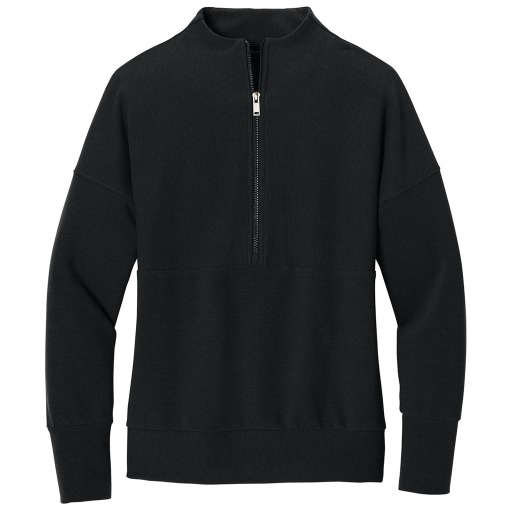 The Mercer+Mettle Women's Deep Black Linear Texture 1/4-Zip with embroidery combines elegance and comfort with its textured fabric and sleek design. The 1/4-zip closure provides adjustable coverage while the moisture-wicking material keeps you cool and dry. Whether for work or weekend wear, this pullover offers a refined yet functional solution for layering.Corresponding Men's Style: Mercer+Mettle Men's Deep Black Linear Texture 1/4-Zip