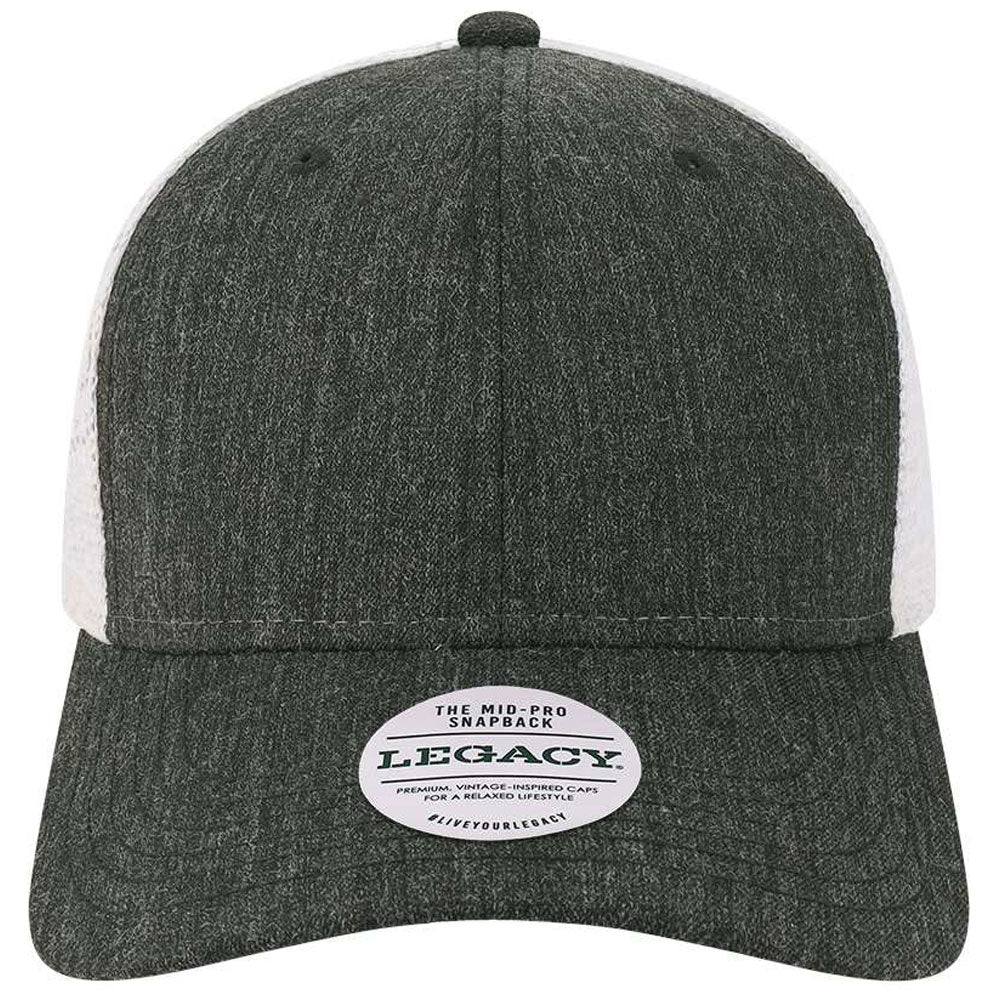 Legacy Melange Black/White Mid-Pro Snapback Trucker Cap