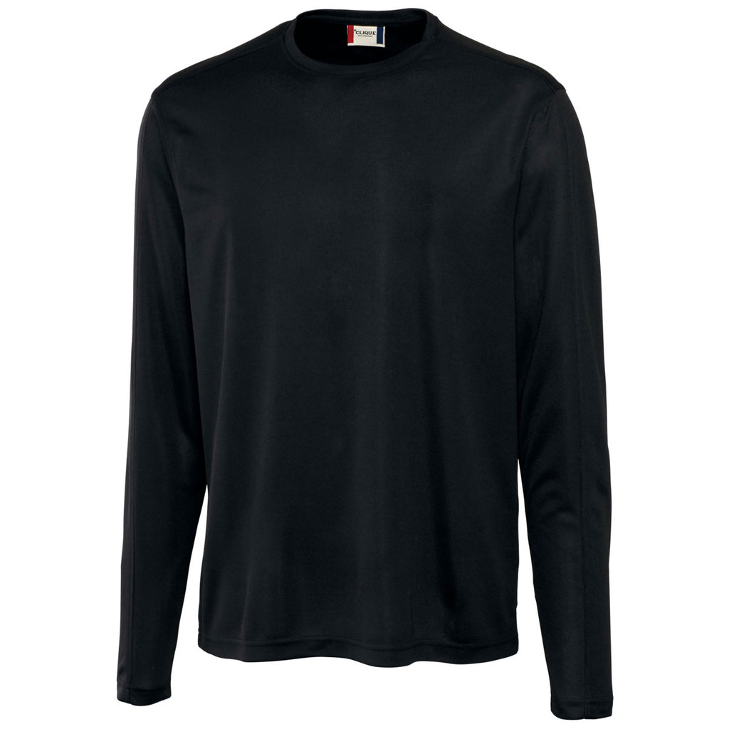 Designed with a chic crew neck, the custom logoed Clique Men's Black Long Sleeve Ice Tee raises the fashion bar for company apparel. Double layer neck trim complements the rich solid colored short sleeve shirt. The 100% polyester mesh fabric not only enhances breathability, the durable fabric also resists rips and tears to give you a go to tee for recreational activities. Wear the tee under a button-down Oxford shirt at work and then lose the long sleeve shirt after work when it comes time to hit the gym. Attach your corporate logo on the embroidery area to share your brand's story with more potential customers.Corresponding Women's Style:Clique Women's Black Long Sleeve Ice Tee