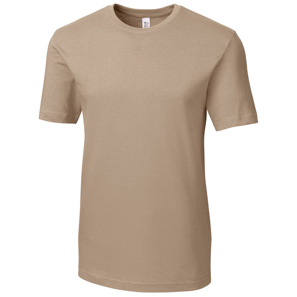 With rip and tear resistant side seams, the company logoed Clique Men's Light Beige Playlist Tee remains in mint condition years after withstanding the punishment delivered by an active lifestyle. Order the tee in bulk to have plenty of employee uniforms in stock. One-hundred percent ring spun cotton feels smooth on the skin to keep your team energized in the field. The easy to tear away tag allows you to screen print your corporate logo for increasing recognition of your company in the community. Wear the multi-purpose tee to work and keep it on later in the day when you relax with professional peers at your favorite restaurant.Corresponding Women's Style: Clique Women's Light Beige Playlist Tee