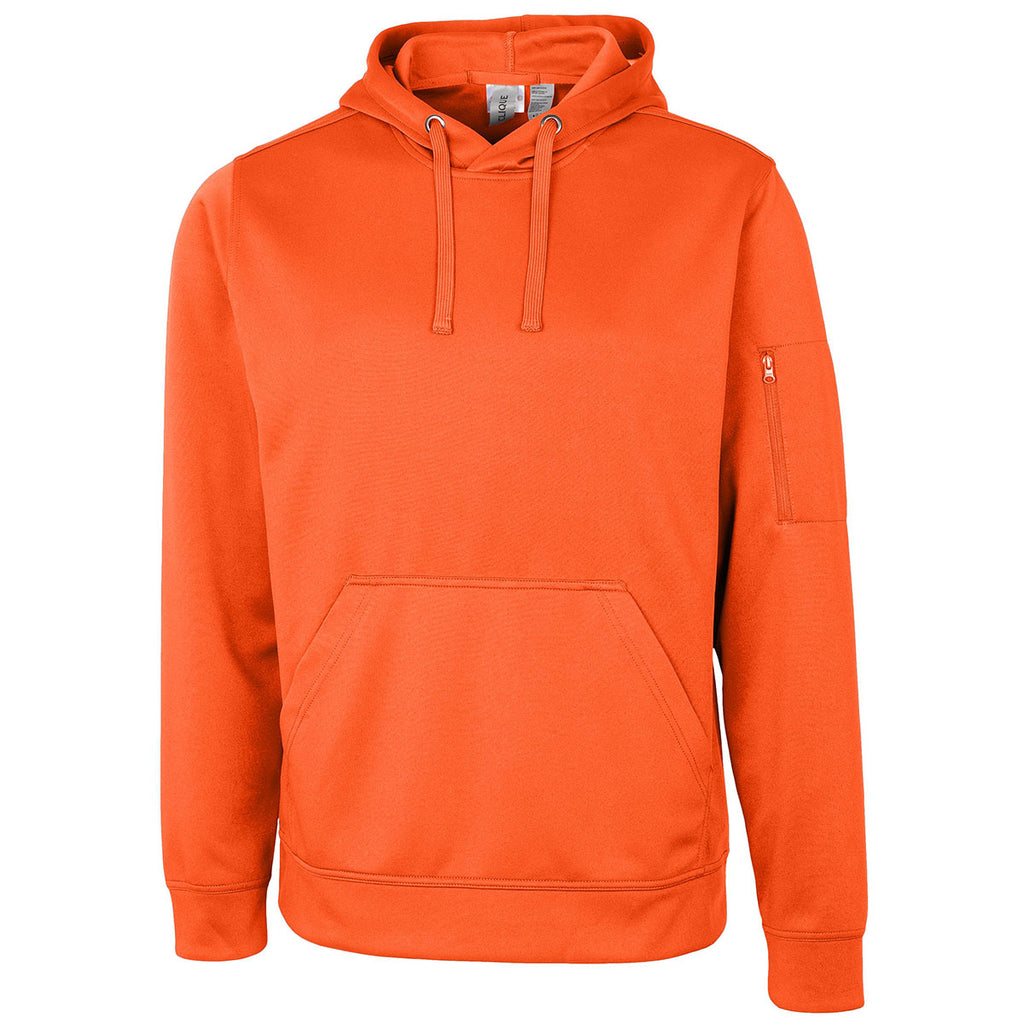 The Clique Men's Orange Lift Performance Hoodie Sweatshirt offers a stylish look and extreme comfort for the wearer to enjoy. With a company logo added in screen print, you can personalize this sweatshirt to show off your company name to the masses. Hand this corporate apparel item out at golf events or recruiting events or you can give it to your loyal employees as a gift. Some of the tempting features of this hoodie sweatshirt include a variety of classic colors to choose from, 100% polyester interlock fabric, attached hood with drawstrings, kangaroo pocket with interior cell phone pocket, left sleeve zip pocket, and self-fabric banded cuffs and hem.Highlights