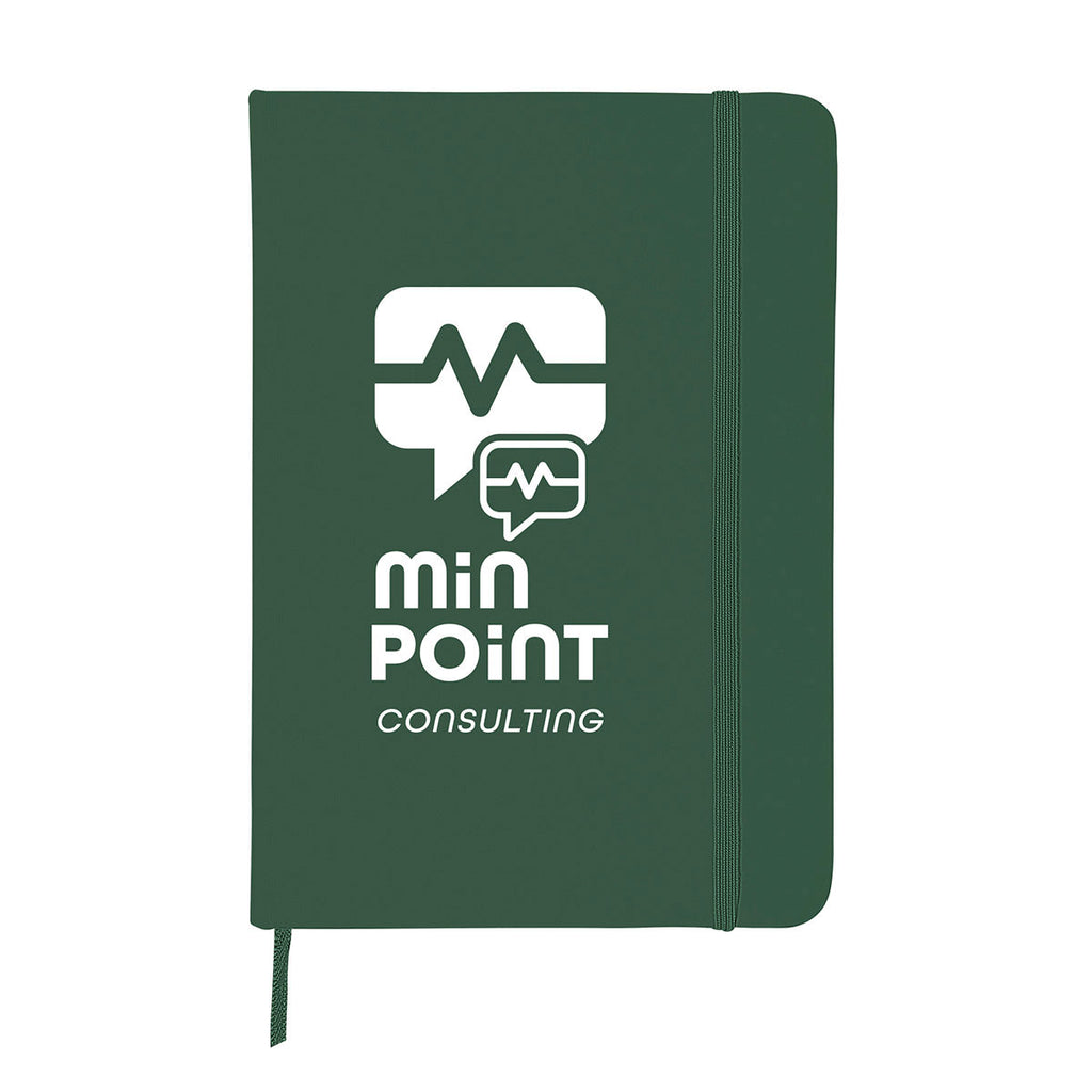 Your company's custom logo will make a statement when it's added to the front of this Primeline Hunter Green Comfort Touch Bound Journal - 5" x 7". Available in a vibrant array of color options, this customizable notebook includes 80 lined sheets of paper as well as a ribbon bookmark to keep your place.