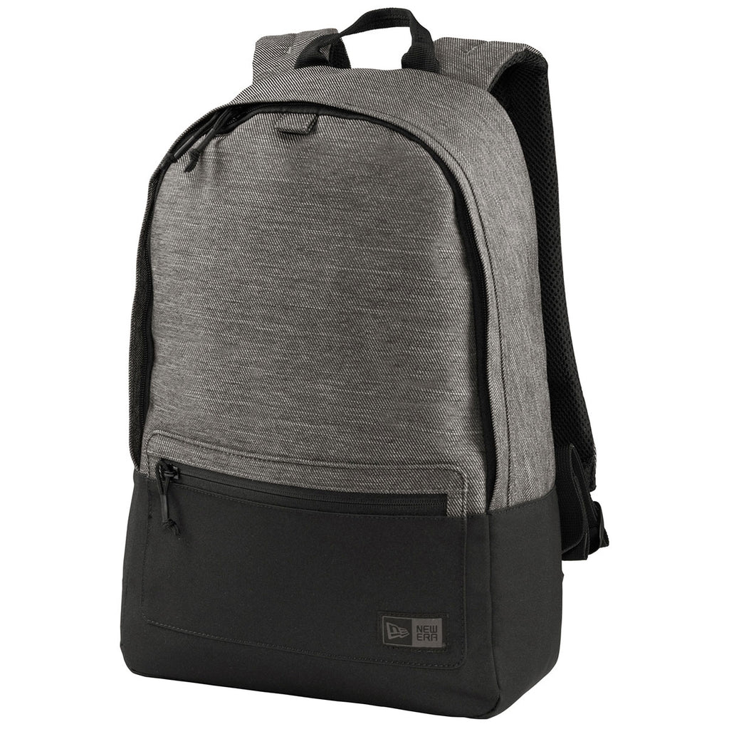 Heavy protective foam on the back of the custom logoed New Era Black Twill Heather/Black Legacy Backpack not only protects electronic devices, it also supports your back to ensure pain free business trips. The padded laptop sleeve absorbs the constant pounding delivered by bumpy flights. Rugged polyester resist rips and tears to give your team go to luggage that lasts for years to come. Add your company logo on the large imprint area to send a marketing message potential customers will remember. An extensive office organizer comes with angled pockets that allows you to access your cell phone quickly.