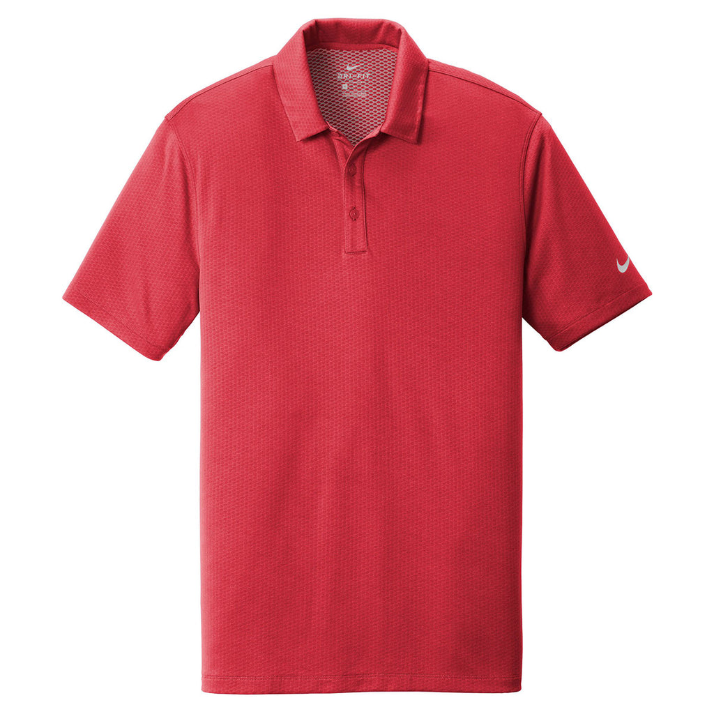 With an area for embroidery, the company logoed Nike Men's Gym Red Dri-FIT Hex Textured Polo represents the ultimate gift to hand out to your employees before a big golf tournament. Designed with 100% polyester, the textured polo feels smooth on the skin and withstands the punishment delivered by active lifestyles. Wear the polo to a professional networking event and put it on before a daylong bicycle ride. Moisture wicking performance prevents Mother Nature from dampening the day. Add a custom logo on the large imprint area to let everyone know your company sells the finest products and services.
