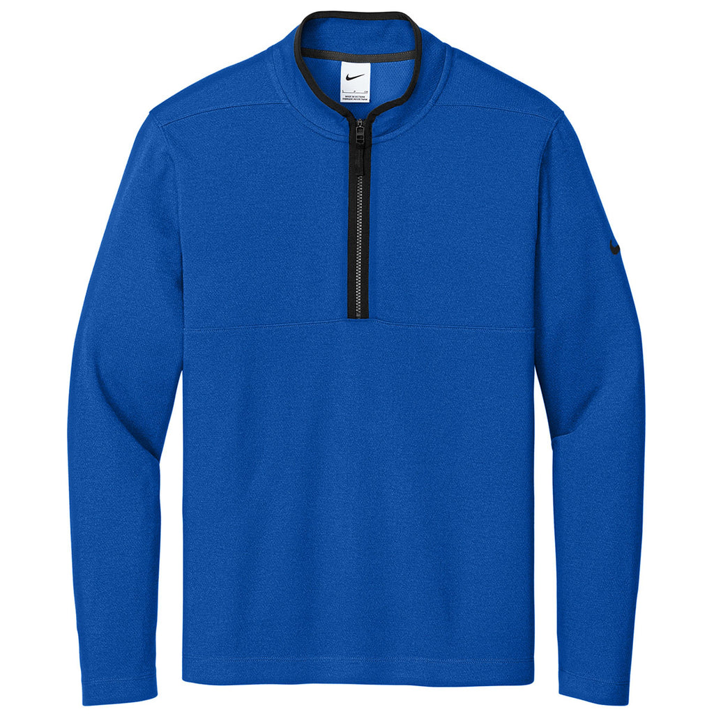 Add a custom logo to the Nike Men's Gym Blue Textured 1/2 Zip Cover-Up for a simple yet versatile layering option that is fun and easy to wear. The breathable, slightly brushed fabric is lightweight while keeping you warm for evening adventure. Use as company-wide apparel or add to your personal logoed apparel line.