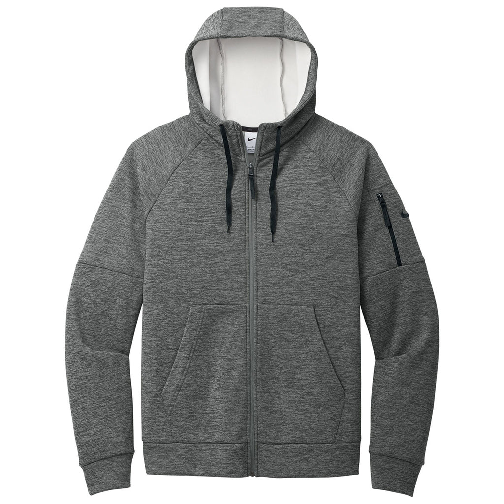Choose custom embroidery for the Nike Men's Charcoal Heather Therma-FIT Pocket Full-Zip Fleece Hoodie for a look that is ready for fun or relaxation. This interesting hoodie design with a sleeve pocket and Nike Swoosh on the left sleeve is a must-have for those who like to create a casual vibe at home or on the go. Great for special events or team gear. Place an order today.This product cannot ship outside of the United States.