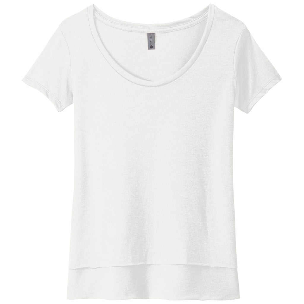 Amp up your tee collection with a custom Next Level Women's White Festival Scoop Neck Tee. This takes the simple tee to the nest level with a scoop neck cut that provides flair. Add a company logo to use this as employee apparel or for some special employee event used for team or company building. Try out a custom logo to use for a team, organization, club, or just to add to your own wardrobe. The poly and ring spun cotton blend is soft, comfortable, and wearable with rib knit scoop neck and a relaxed fit. The raw edge creates an exaggerated drop tail hem for extra coverage.Highlights