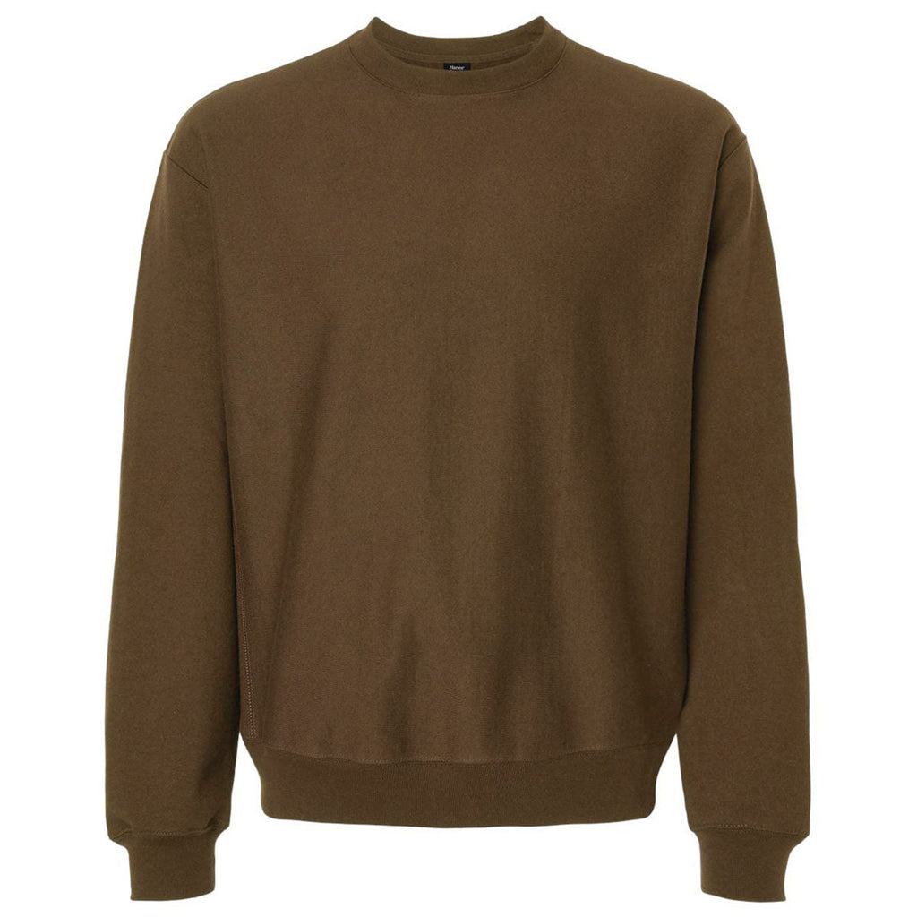 Hanes Unisex Army Brown Beefy Sweats Premium Heavyweight Crewneck Sweatshirt
