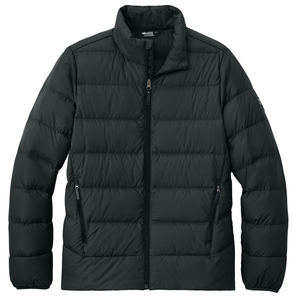 Outdoor Research Men's Black Coldsnap Down Jacket with a custom logo is a fun and functional way to stay warm when the weather turns cold. This jacket is engineered with extra insulation in the sleeves and core to protect you from the wind while resisting rain and snow. Whether trekking through the mountains or to the office, this is a must.