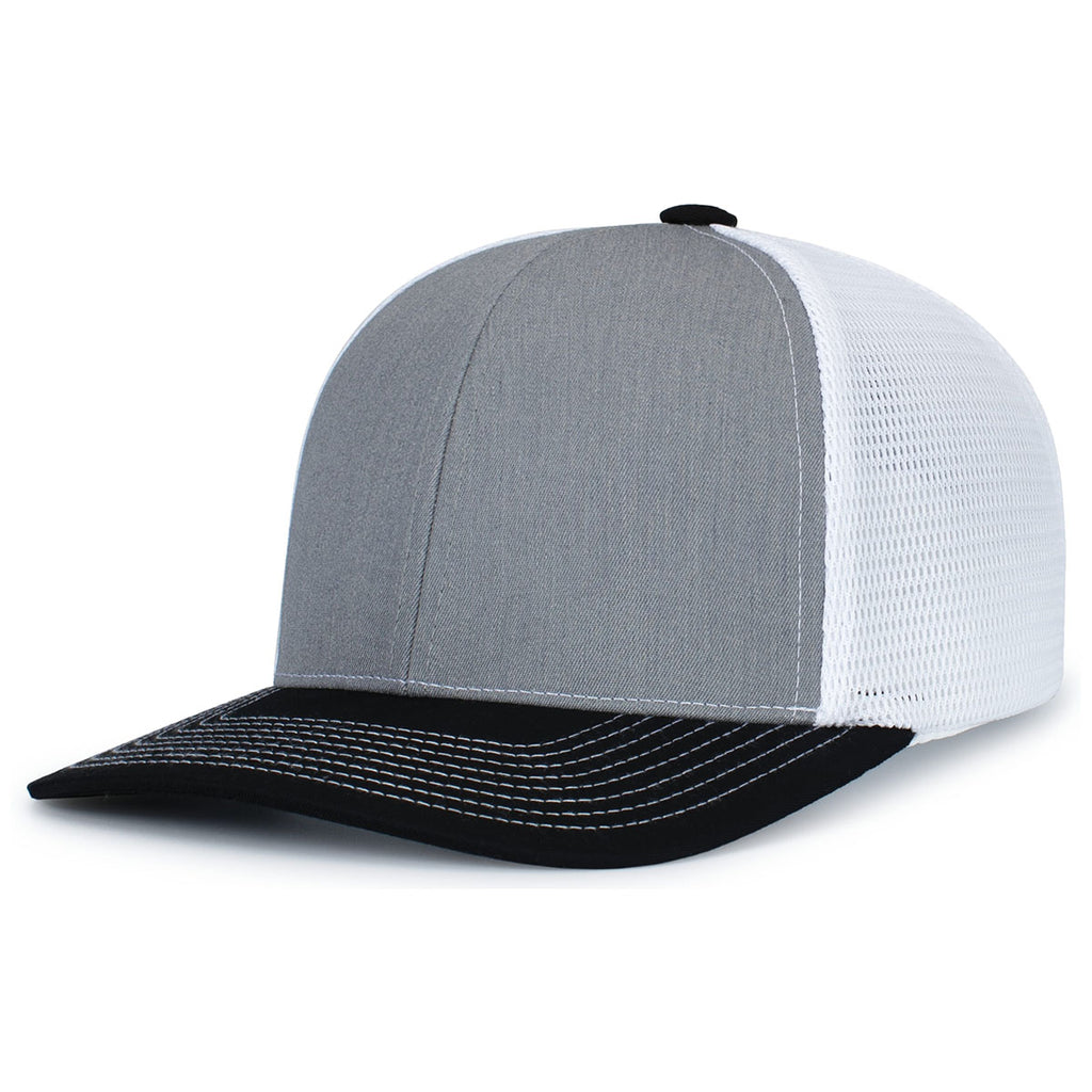 Add your corporate logo to the Pacific Headwear Heather Grey/White/BlackContrast Stitch Trucker Pacflex Snapback Cap for a fun and simple way to showcase your brand. The iconic trucker cap is a one-size-fits-most adjustable design with mesh backing, a mid-profile, and a curved visor that is easy to wear and share, whether at a trade show, special event, or to increase customer relations. Order today.Highlights