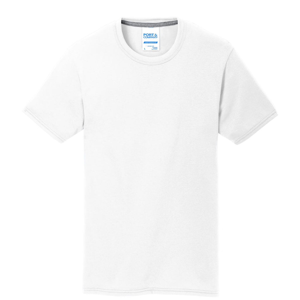 Port & Company Men's White Performance Blend TeeCorresponding Women's Style: Port & Company Women's White Performance Blend V-Neck Tee