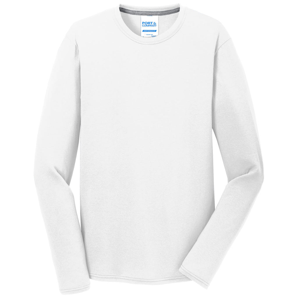 Port & Company Men's White Long Sleeve Performance Blend TeeHighlights