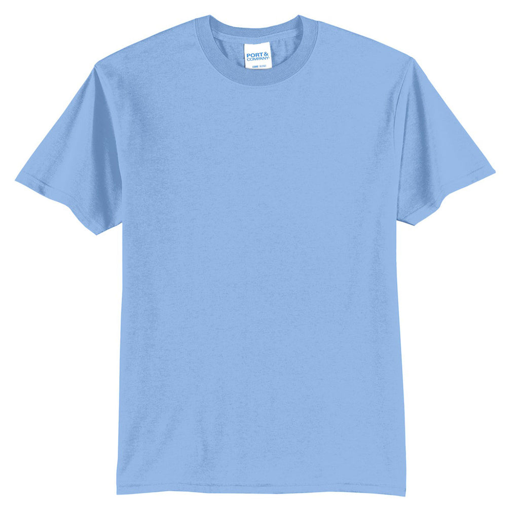 When you want to order branded company apparel, you cannot go wrong with the custom logoed Port & Company Men's Light Blue Tall Core Blend Tee. The stylish tee makes the ideal giveaway for the job candidates attending the next career day. Attach your company logo on the large imprint area to keep your company in the minds of anyone that interacts with you at the career fair. The blend of cotton and polyester creates a super soft fabric that resists rips and tears. Turn the printed tee into the company softball uniform, which exposes your brand to hundreds of customers each week.Highlights