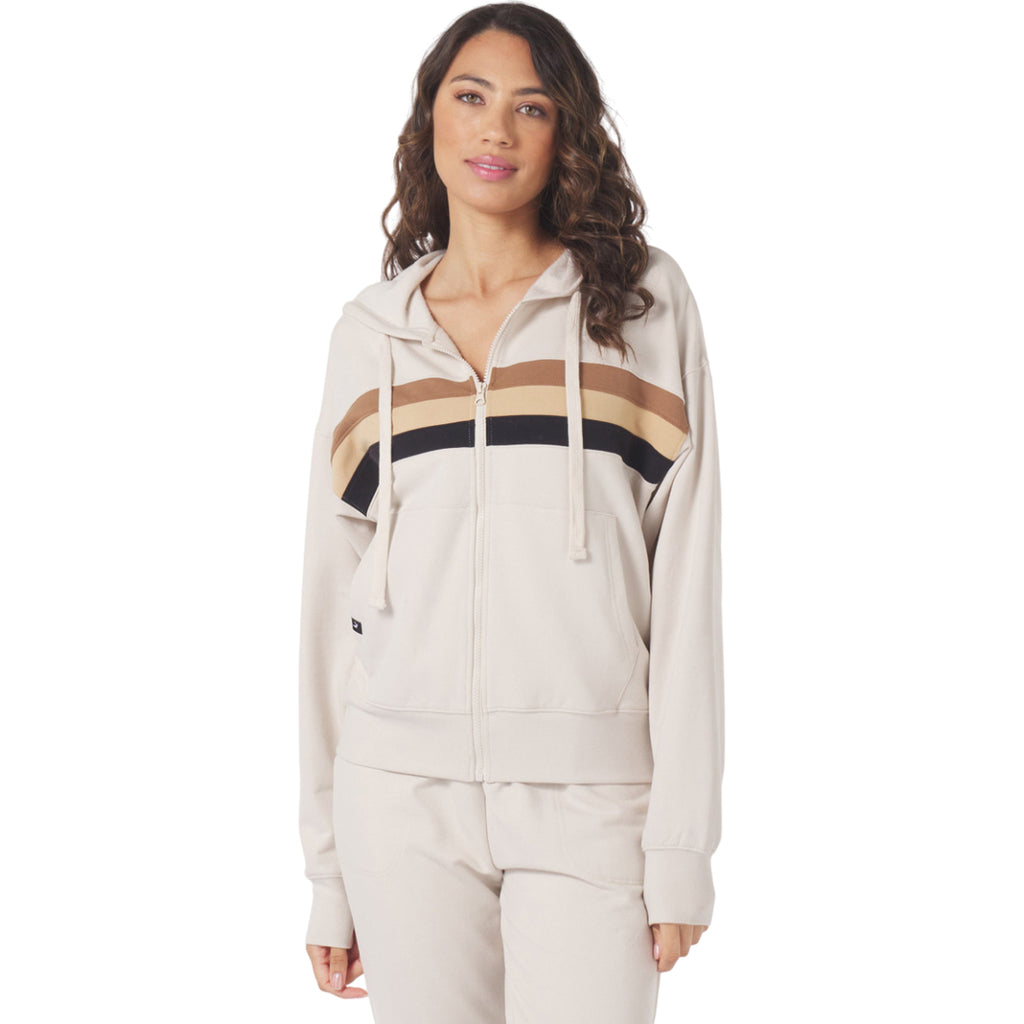Glyder Women's Oatmilk Tonal Stripes Vintage Oversized Zip up
