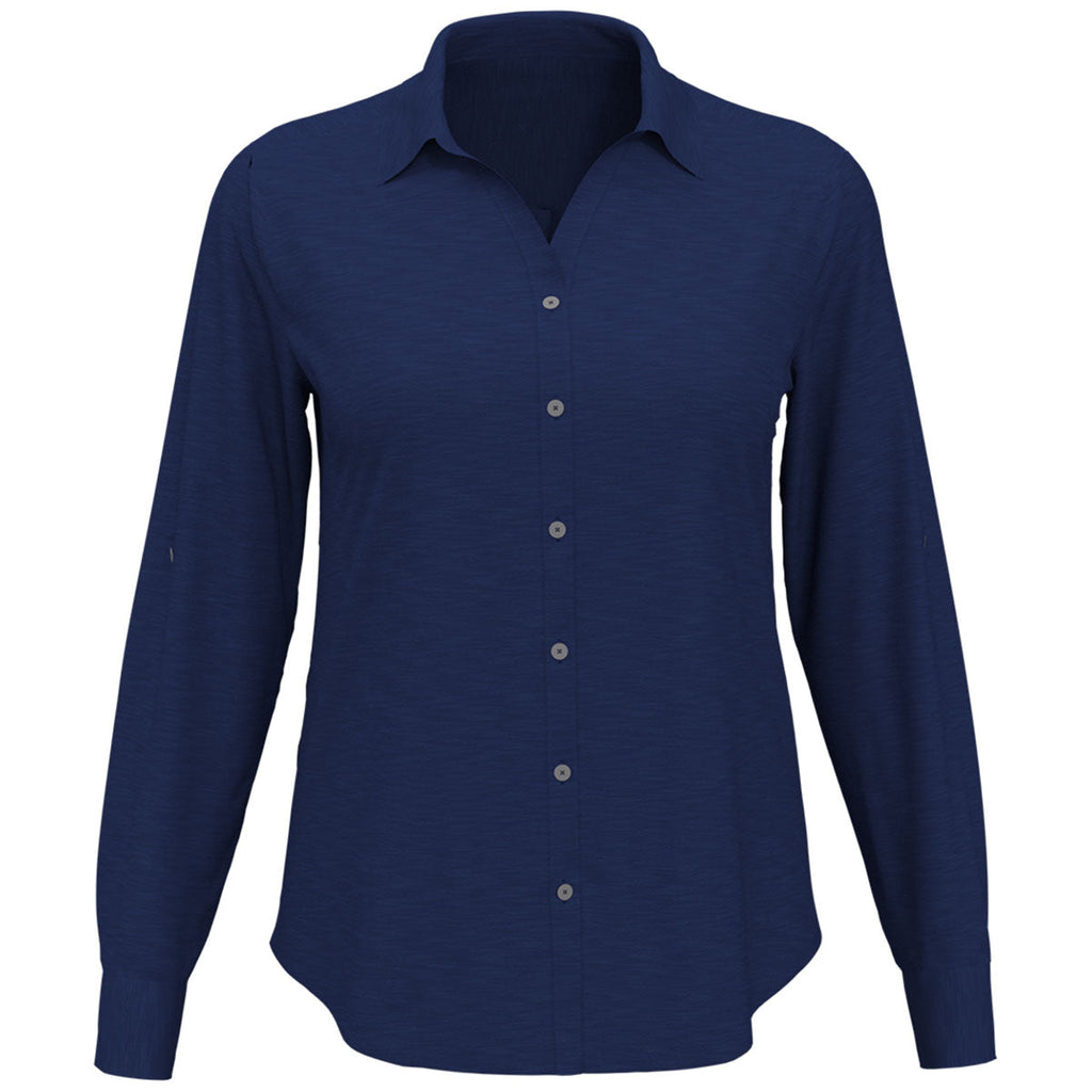 Add embroidery to the Perry Ellis Women's Classic Navy Heathered Woven Shirt for a fun and flirty work that can be dressed up or down as needed. The button-up V-neck has a feminine fit with sleeves that can be converted to 3/4 with ease. Ideal for work, hanging out, or a fun night with friends. Place an order today.Corresponding Men's Style: Perry Ellis Men's Classic Navy Heathered Woven Shirt