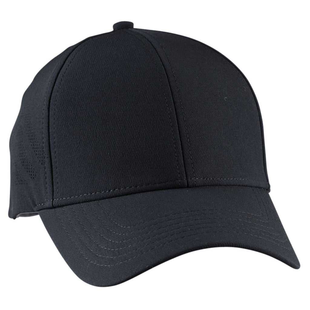 Have you been searching for the perfect people pleaser to show off your company's embroidered logo? This Adams Black Pro-Flow Cap will handle the heavy lifting. This is a gift that anyone would be happy to receive and wear! Not only does it come in seven solid colors, it has been treated with UV protection and also water repellant. There are laser ventilation holes in a chevron pattern on the sides. It has a self-back closure with plastic ring. There is an Adams rubber patch on the back strap. The under-visor matches the crown. Select from black, stone, white, Bimini blue, charcoal, navy and royal blue.Highlights