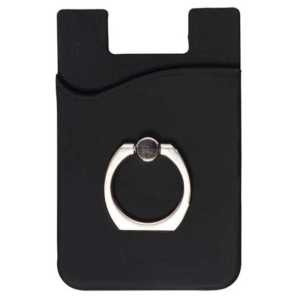 Primeline Black Silicone Card Holder with Metal Ring Phone Stand