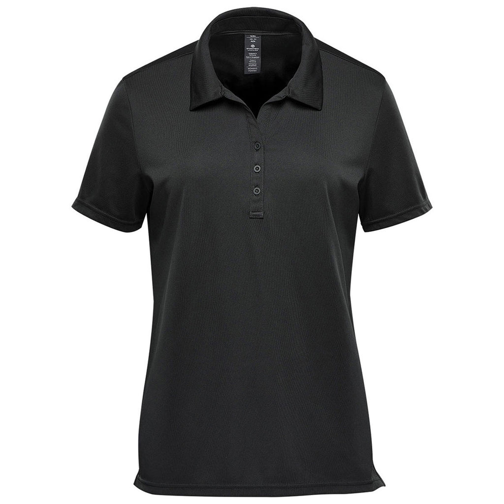 Stormtech Women's Black Treeline Performance Short Sleeve Polo with embroidery will work as hard as you do in life. The hardwearing polo is made from environmentally sustainable recycled polyester double pique with moisture wicking for comfort. Snag resistant fabric means durability and a new look longer even after multiple wash and wears. Add a company logo to the polo for those who work indoors or out and use as a uniform. The sleek, fashionable design creates a put together silhouette that will represent your company well. Try a custom logo to add to your logoed apparel line to share at a club house for golfers, tennis players, and the fashion elite. Place an order today.Highlights