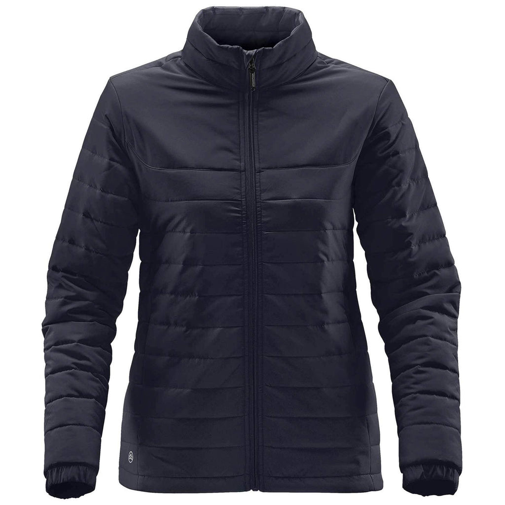 Make a positive impression on job candidates at the next company recruiting event by giving away one of the best winter weather jackets, the Stormtech Women's Navy Nautilus Quilted Jacket. Designed with layers of cold blocking insulation, the quilted jacket quickly removes moisture to deliver the one-two punch of comfort, which is warmth and dryness. Elastic cuffs give your job candidates optimal mobility to tackle winter home improvement projects. Attach your brand's logo on the large area of the jacket to send the message that your company stands for superior quality. Rip and tear resistant fabric keep the jacket in mint condition for years to come.Corresponding Men's Style: Stormtech Men's Navy Nautilus Quilted Jacket