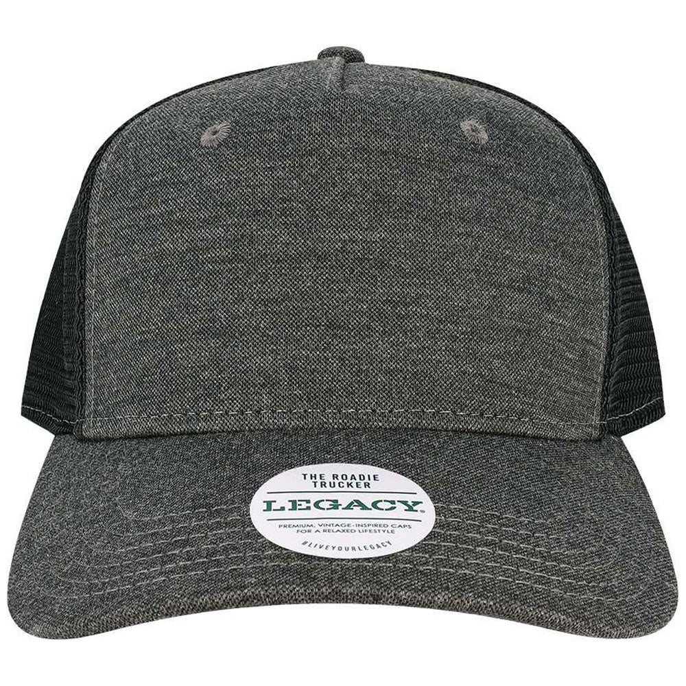 Legacy Black/Black Heather Five-Panel Trucker Cap