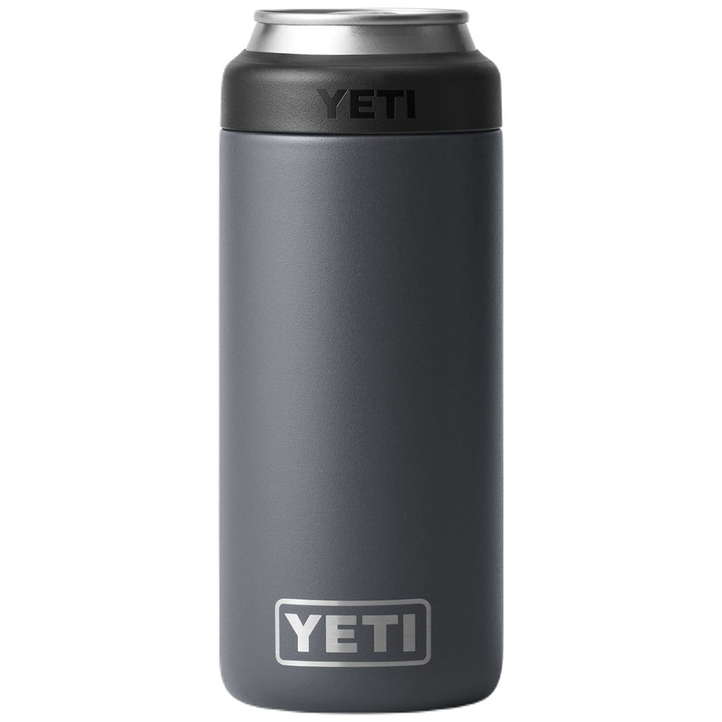 Hot summer days call for the YETI Charcoal Rambler 12 oz Colster Slim Can Cooler. Sleek, stylish, and perfect for holding 12 oz slim cans, it's available in a range of colors that are sure to complement your company's custom logo or design. The no-sweat exterior will keep your beverage cold without ever causing condensation.