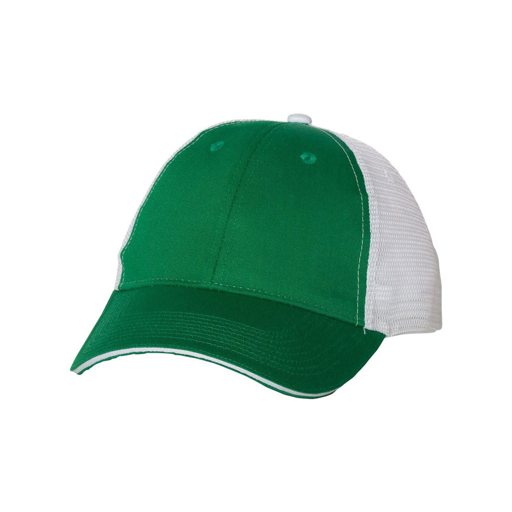 When you need headwear for a long trek cross country, put on the custom logoed Valucap Kelly/White Sandwich Trucker Cap. Designed with a cotton and polyester blend, the super soft cap resists rips and tears to keep the headwear in pristine condition for years to come. One-hundred percent polyester mesh in the back of the hat helps circulate air to keep you comfortably cool. Structured six panels present a professional appearance for customers who apply their skills outdoors. The mid profile design keeps the sun out of your eyes during corporate softball games. Attach your company logo to get the word out about your products and services.Highlights