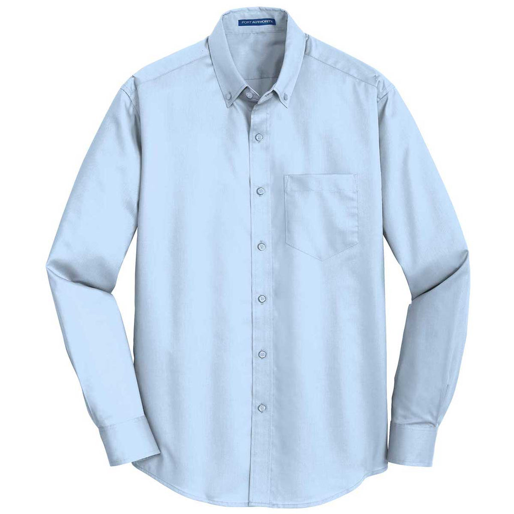 The 55% cotton and 45% polyester used to design the Port Authority Men's Cloud Blue SuperPro Twill Shirt resists wrinkles and repels stains. Designed to wear everywhere you go, the twill shirt makes the perfect match for the office followed by a dinner with close friends. Two-button adjustable cuffs allow you to express yourself in a more casual setting by rolling up the sleeves. The button down collar gives the twill shirt sophistication, while not making a formal fashion statement. Use the left chest pocket to carry your smartphone. Attach your company logo to the large imprint area to increase recognition of your brand at professional networking events.Highlights