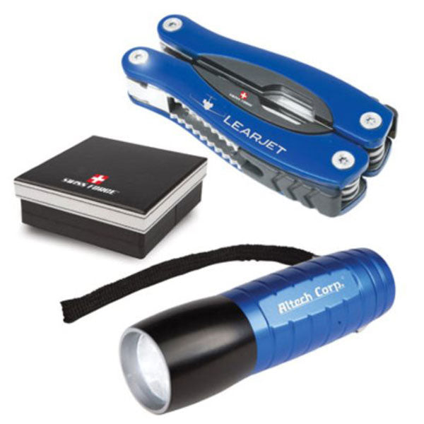 Whatever the corporate gifting occasion, nothing makes a lasting impression quite like the Swiss Force Blue Williamson gift set. It includes both a multi-tool and flashlight with room for your company logo. Recipients including employees and valued customers will appreciate that batteries for the flashlight are included.