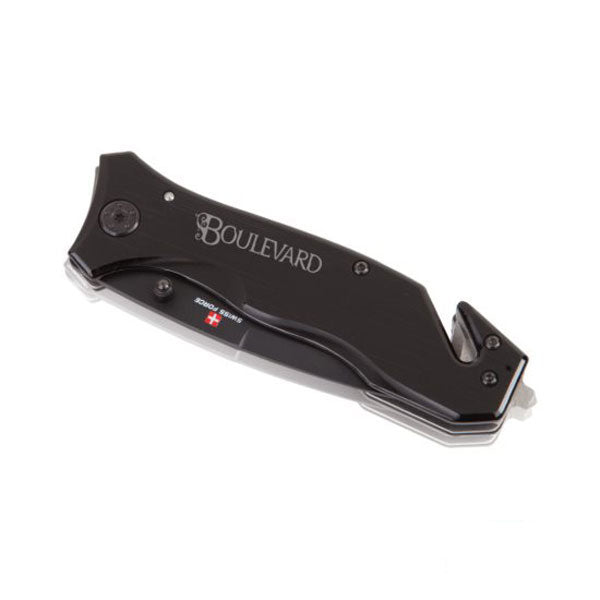 Engrave your company name or logo on the Swiss Force Black Safety to transform it into a rugged, functional, and thoughtful corporate gift. With multiple features that come in handy during auto emergencies, this multi-tool is practical but one that you hope they'll never need to use.