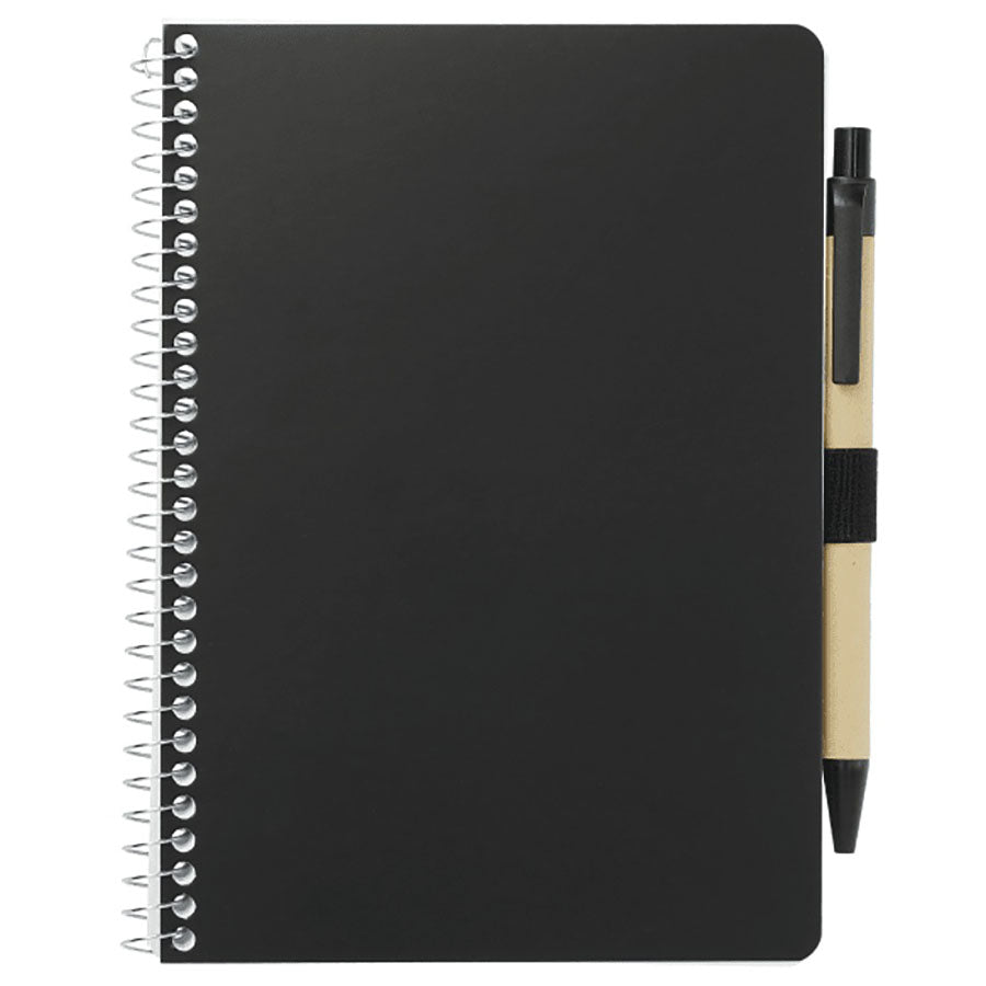 Bullet Black 5'' x 7'' FSC Mix Spiral Notebook with Pen