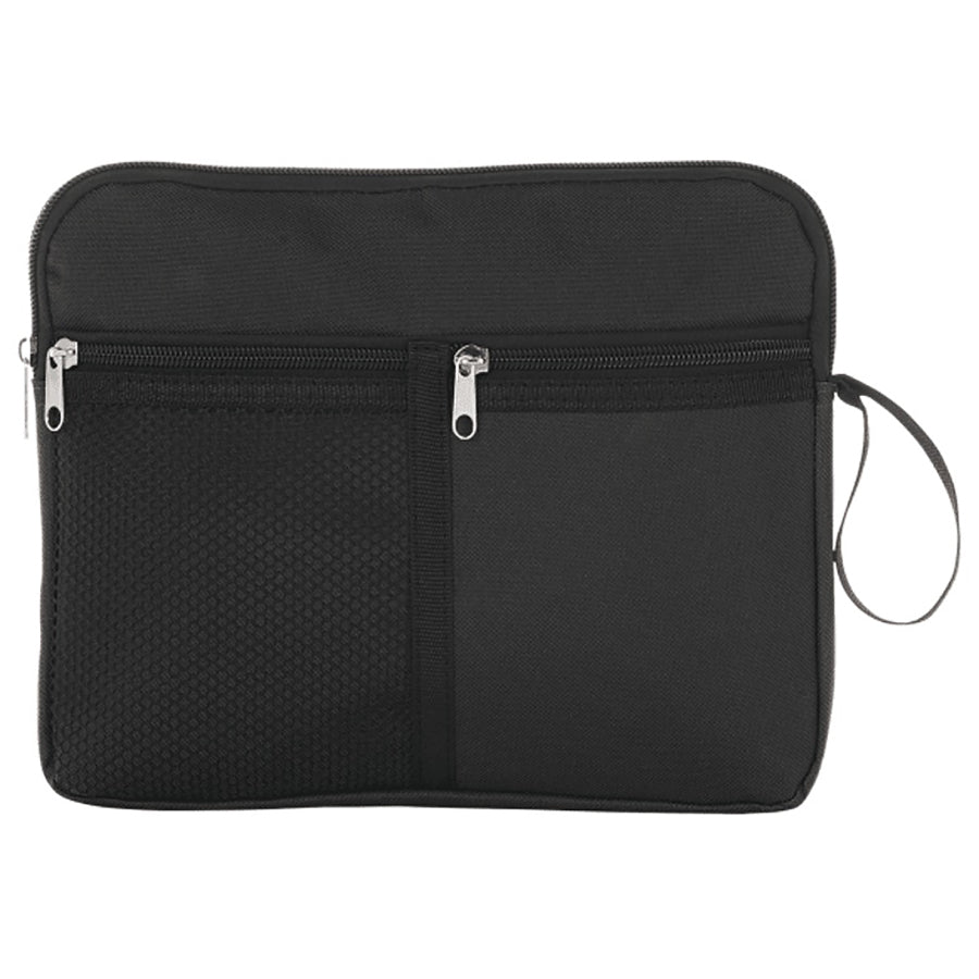 Expand your product lineup with the versatile Multi-Purpose Overnight Travel Toiletry Bag in Bullet Black—ideal for offering your customers both functionality and style. Crafted from durable 600d polycanvas, this bag is designed to withstand the rigors of travel while keeping your essentials secure. The zippered top pocket offers ample space for toiletries, while the front mesh pocket provides quick access to smaller items.