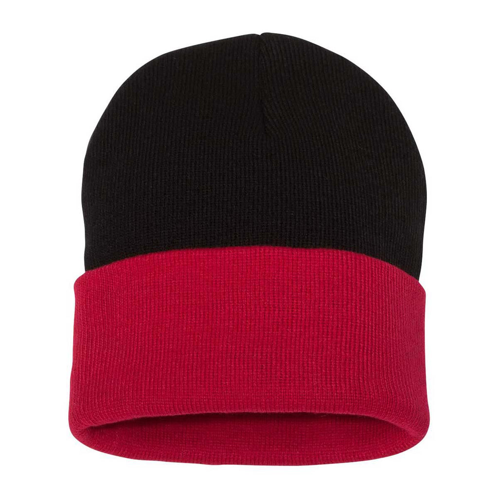 Create a custom look in multiple colors with the Sportsman Black/Red 12" Knit Beanie. Made of 100% acrylic knit, this beanie has an adjustable cuff that can be worn as you prefer. Add a company logo to use these beanies as part of employee apparel for those who need to create a look that best represents your company. Add a corporate logo and choose a bright color for those who need headwear while working outdoors. These make an ideal gift for those in your company or for fans of sporting events that want to show local team spirit.Highlights