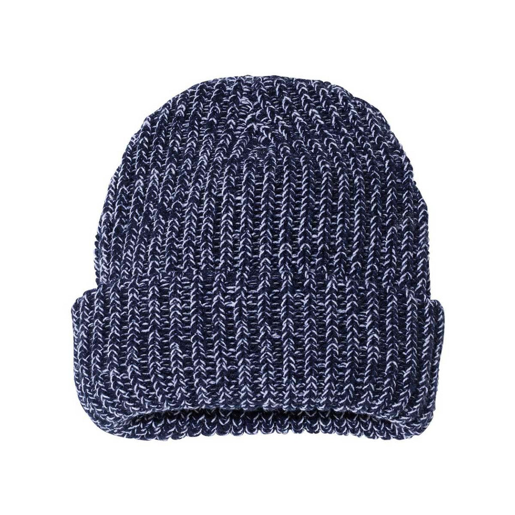 Create a custom look in multiple colors with the Sportsman Navy/White 12" Chunky Knit Cap. Made of 100% acrylic knit, this cap has an adjustable cuff that can be worn as you prefer. Add a company logo to use these knit caps as part of employee apparel for those who need to create a look that best represents your company. Add a corporate logo and choose an appropriate color for those who need headwear while working outdoors. These make an ideal gift for those in your company or for fans of sporting events that want to show local team spirit.Highlights