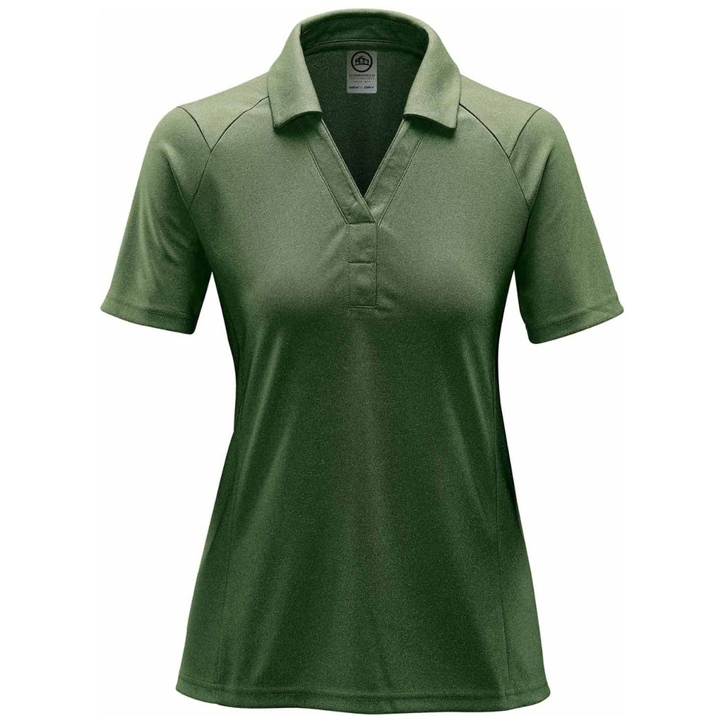 Enjoy all your outdoor activities in a custom logo Stormtech Women's Earth Mistral Heathered Polo in five beautiful colors. The double pique heathered polo offers an open v-neck with a combination shoulder allows for freedom of movement whether playing a round of golf or headed to the company outing. Add a corporate logo to these polos with buttonless placket to use as employee apparel or highly admirable corporate gifts. The H2X-DRY technology wicks away moisture as you enjoy your choice of activity at the next company outing. Place your order today in your choice of colors and the custom logo of your choosing.Corresponding Men's Style: Stormtech Men's Earth Mistral Heathered Polo