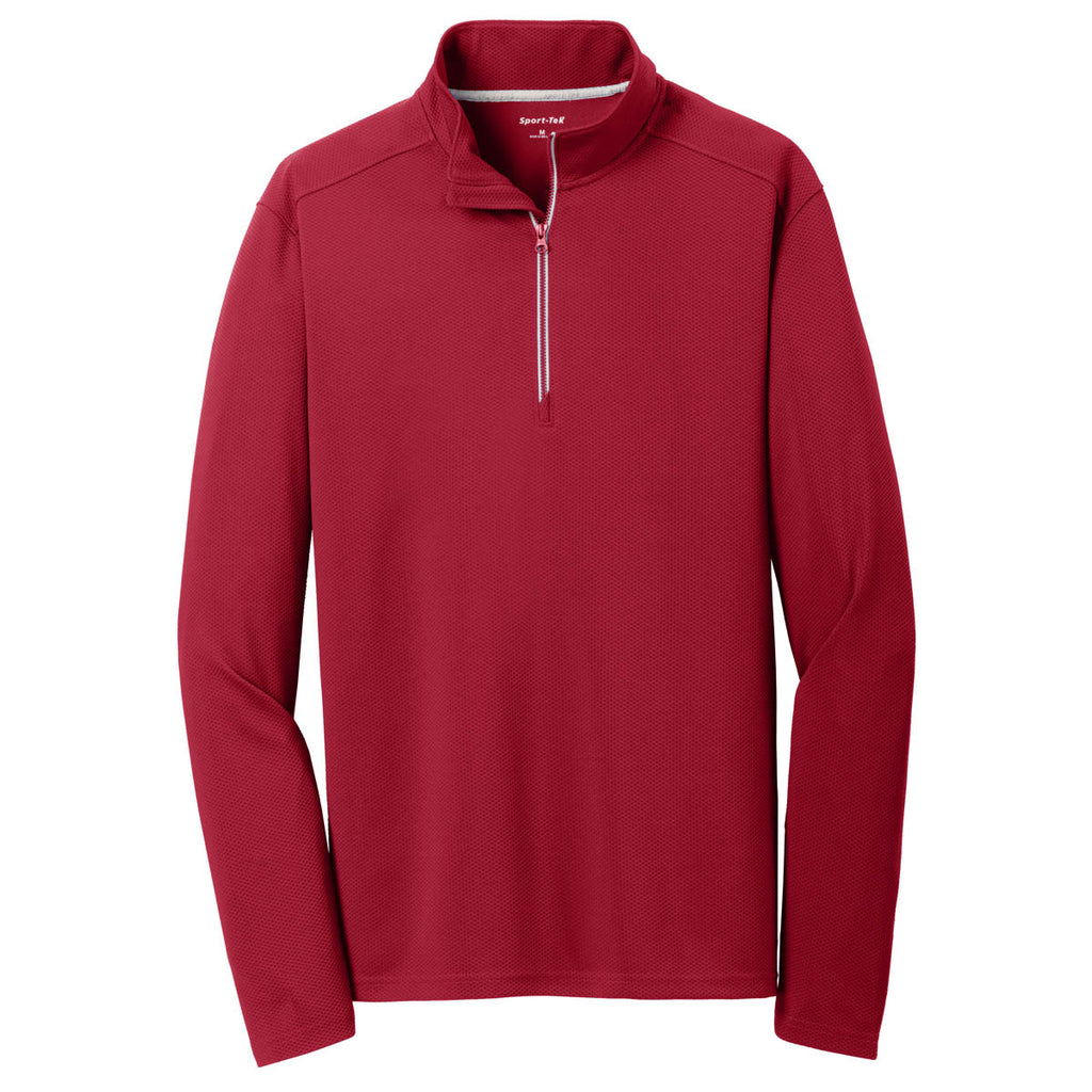 A good corporate quarter zip should be ready for anything. Armed with durable 100% polyester, the Sport-Tek Men's Deep Red Textured 1/4-Zip Pullover is ready for anything and a little bit more. Not only is it comfortable, with the aforementioned fabric and a tag-free label that the back of your neck will thank you for, but it offers a chin guard, set-in sleeves, open cuffs and hem, and a contrast zipper & cadet collar. Add your company's custom logo to the left chest and you'll be ready to display your corporate branding in just about any situation, looking clean, professional, and ready for anything.Corresponding Women's Style:Sport-Tek Women's Deep Red Sport-Wick Textured 1/4-Zip Pullover