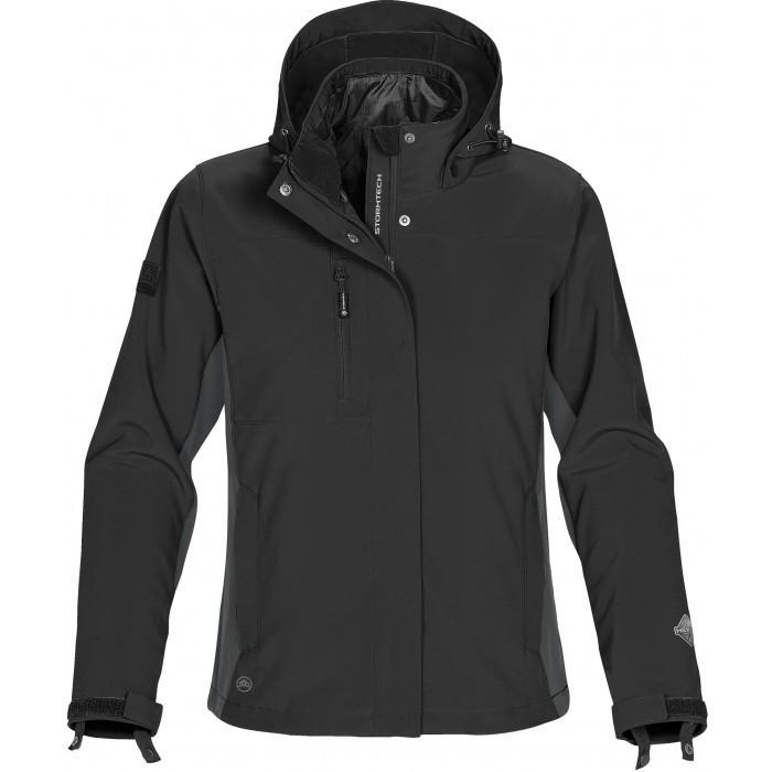 Welcome to the what may be the best women's jacket designed for everyday wear. The Stormtech Women's Black/Granite Atmosphere 3-In-1 Jacket is optimized to deliver waterproof and durable protection without sacrificing breathability and a lightweight feel. Add a custom company logo or brand name and this coat becomes a feature-rich piece of outdoor team wear or a high-quality corporate gift item.Corresponding Men's Style: Stormtech Men's Black/Granite Atmosphere 3-In-1 System Jacket