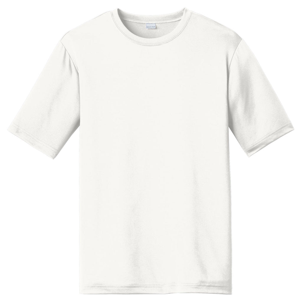 Do moisture laden t-shirts bog you down whenever you need to ramp up the competitive juices? Sport-Tek Men's White PosiCharge Tough Tee contain moisture wicking technology that quickly evaporates perspiration the instant it forms on your skin. The result is a cooling of the skin that invigorates your body. Set-in sleeves allow for more arm movement, which comes in handy on the golf course and tennis court. The super soft fabric endures countless wash and dry cycles, without any of the colors fading. One-hundred percent rugged polyester interlock resists rips and tears. Attach your company logo to the t-shirts to spread the word about your brand.Corresponding Women's Style: Sport-Tek Women's White PosiCharge Tough Tee