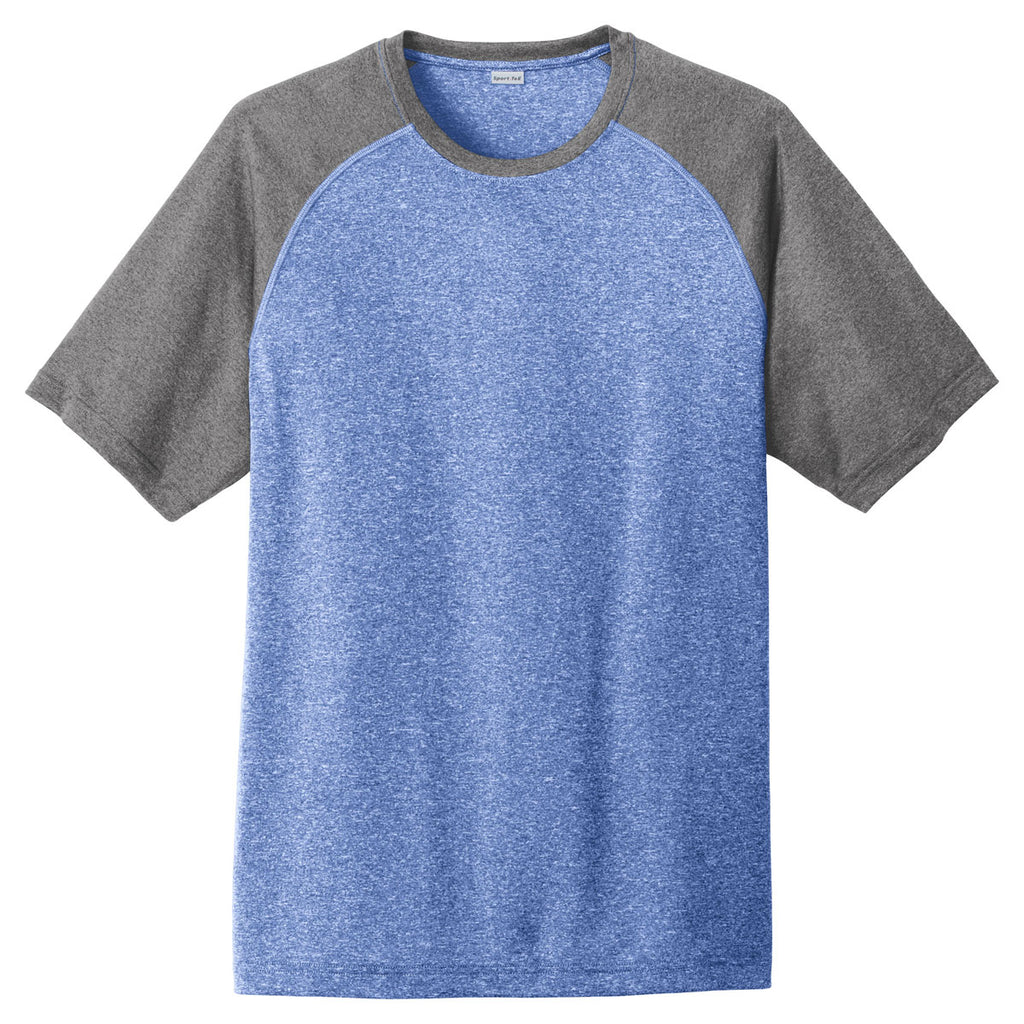 The next time you want to show appreciation for your loyal customers, hand out the custom logoed Sport-Tek Men's True Royal Heather-On-Heather Contender Tee. By giving away the tee, you show your continued appreciation to both customers and employees. Add your company logo on the large imprint area to capture more interest in your brand at industry trade shows. The color block design and 100% polyester jersey makes the tee perfect for wearing at company recreational events. Moisture wicking technology keeps you feeling comfortable all day long. Contrast raglan sleeves seal the fashion deal.Corresponding Women's Style: Sport-Tek Women's True Royal Heather-On-Heather Contender Scoop Neck Tee