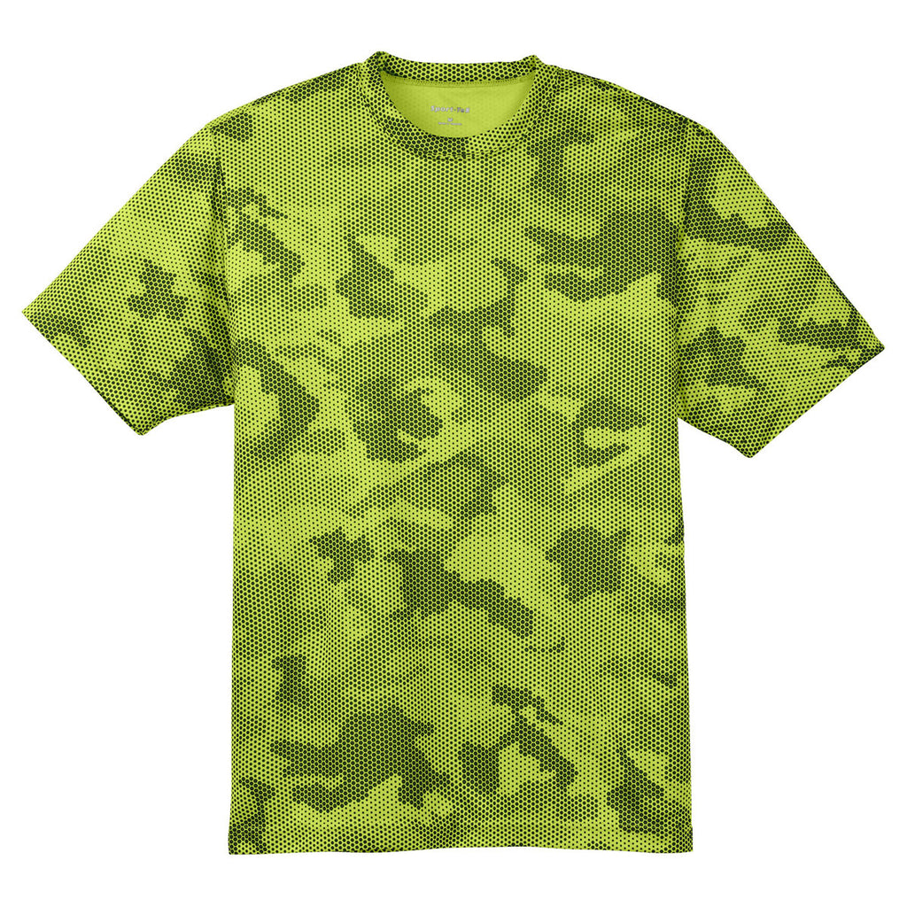 There is a 12 piece minimum on all orders for Sport-Tek t-shirts. This item will be imprinted, not embroidered.Be honest: if there was only one type of upper-body clothing you could bring to a desert island with you, it would be a T-shirt. And it'd probably look something like Sport-Tek Men's Lime Shock CamoHex Tee. That's especially true for businesses who need to create some business apparel from items that will enhance their corporate brand.